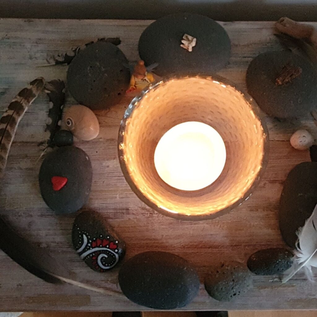Wir nehmen langsam und behutsam wieder Kontakt mit dem eigenen Körper auf. Du spürst Deine Füße auf dem Boden und nimmst die große Erdenmutter unter Deinen Füßen wahr.